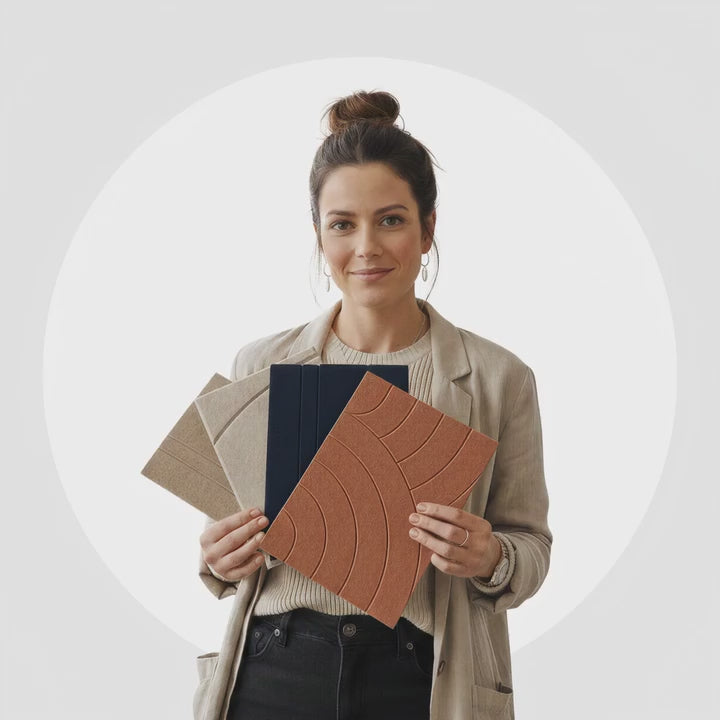 Interesse in een akoestische wand, maar eerst benieuwd hoe de kleur en het materiaal oogt en voelt? Bestel dan eerst deze XL Samples! Elke sample is ca. 350 x 250 x 9 mm en beschikbaar in 11 kleuren. Je kan de samples per stuk bestellen in het ontwerp dat je aanspreekt.
